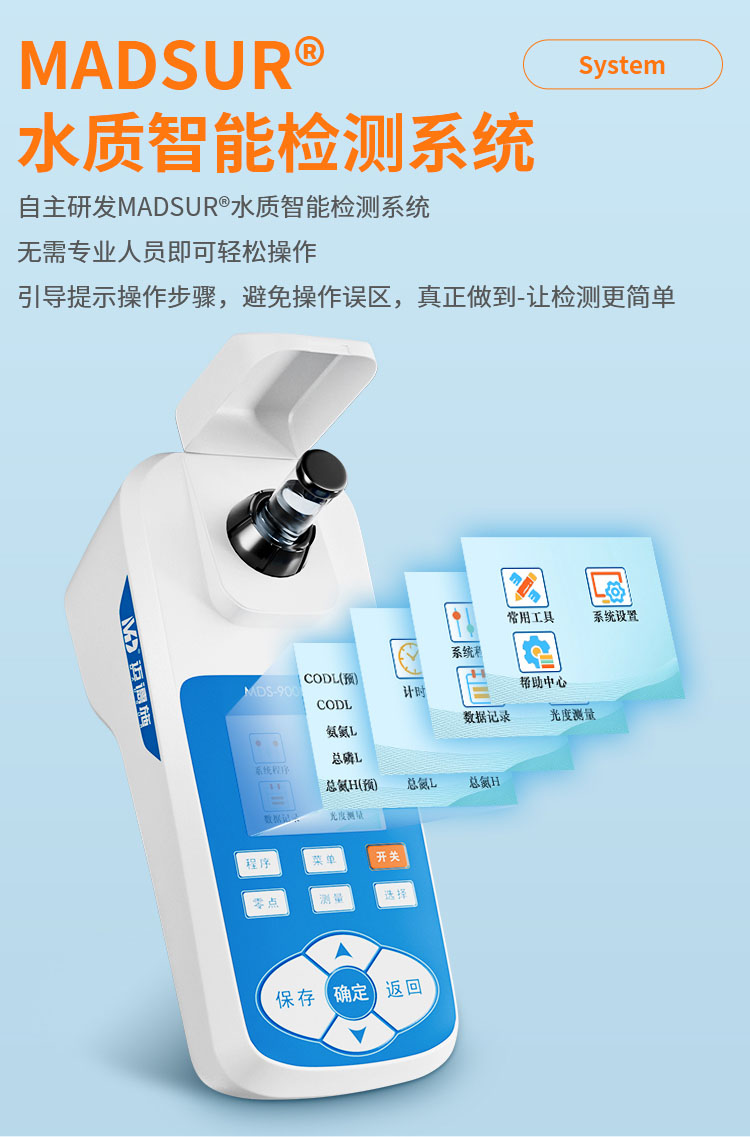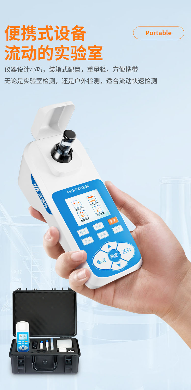 采用消解比色一體管檢測,讓檢測更加簡單、安全。儀器以其外觀設計小巧、檢測快速、操作簡單、成本低等特點,廣泛應用于應急監(jiān)測、污水處理、化工、制藥、醫(yī)院廢水、食品、印染等行業(yè)廢水檢測方面,還可以應用于科研單位、大中專院校等機構(gòu)的廢水研究使用。